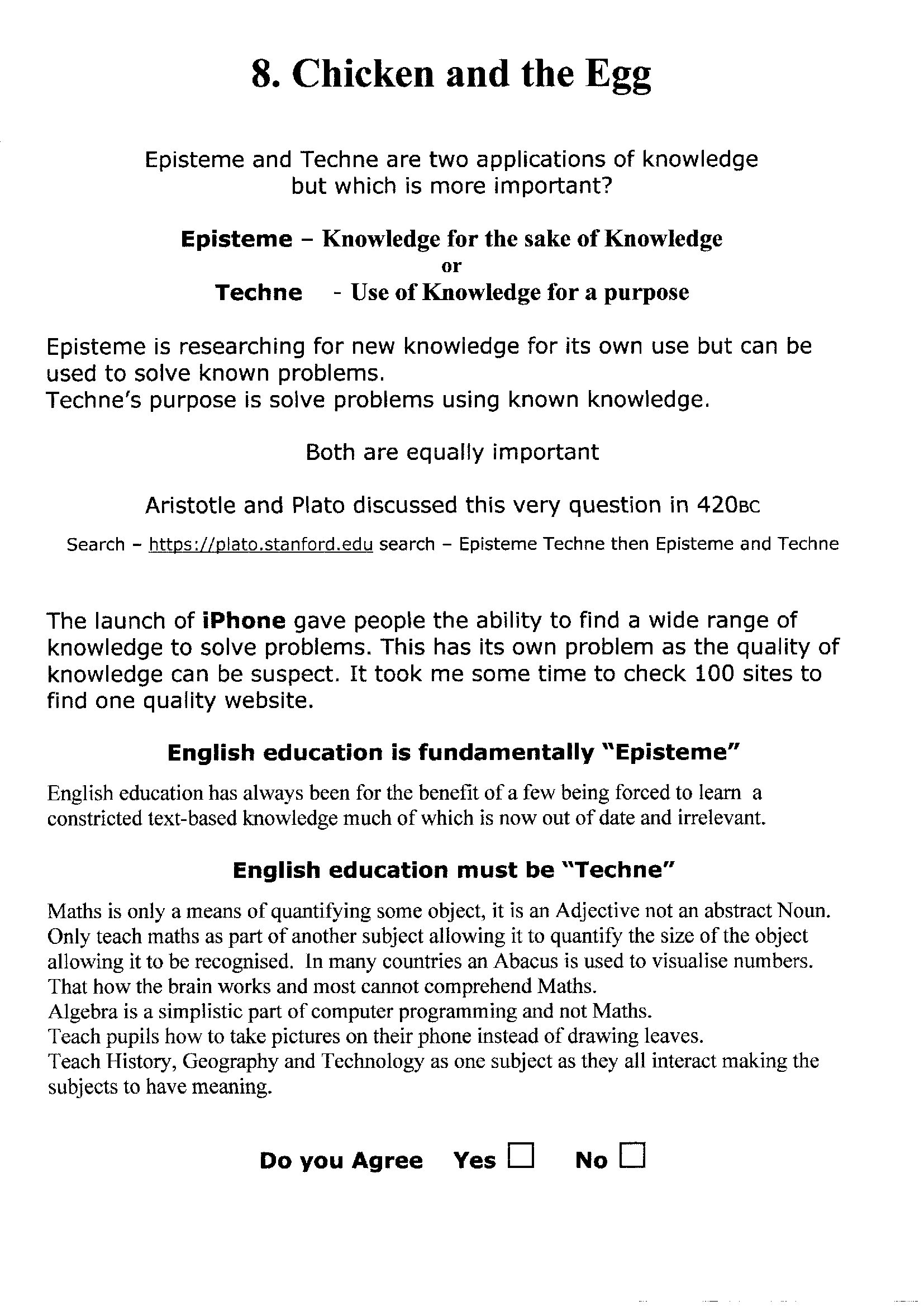 Episteme – Knowledge for the sake of Knowledge or Techne - Use of Knowledge for a purpose