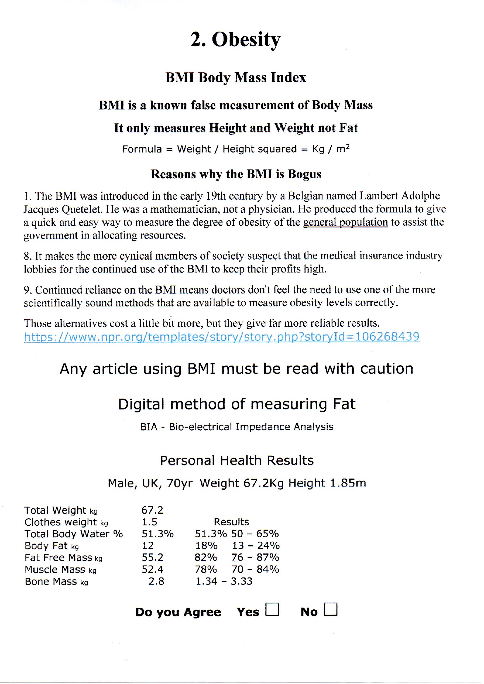I taught Maths and understood that combination of Weight kg and Height m cannot be combined to measure body fat.