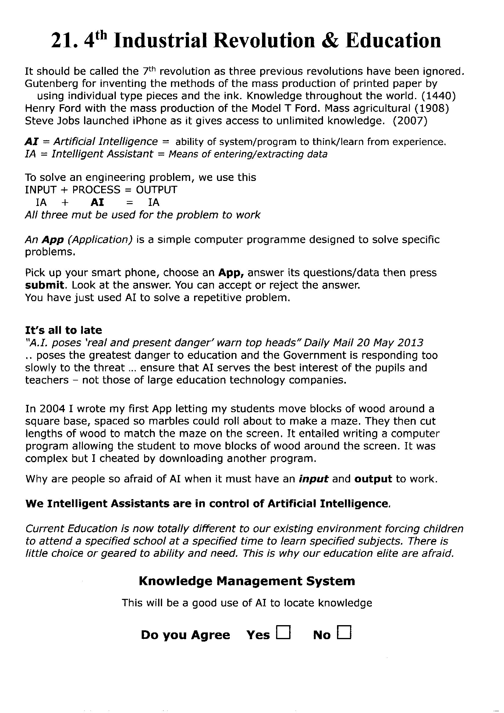 The 4th Industrial Revolution is based upon “Techne” Knowledge for the sake of purpose” Which am I?